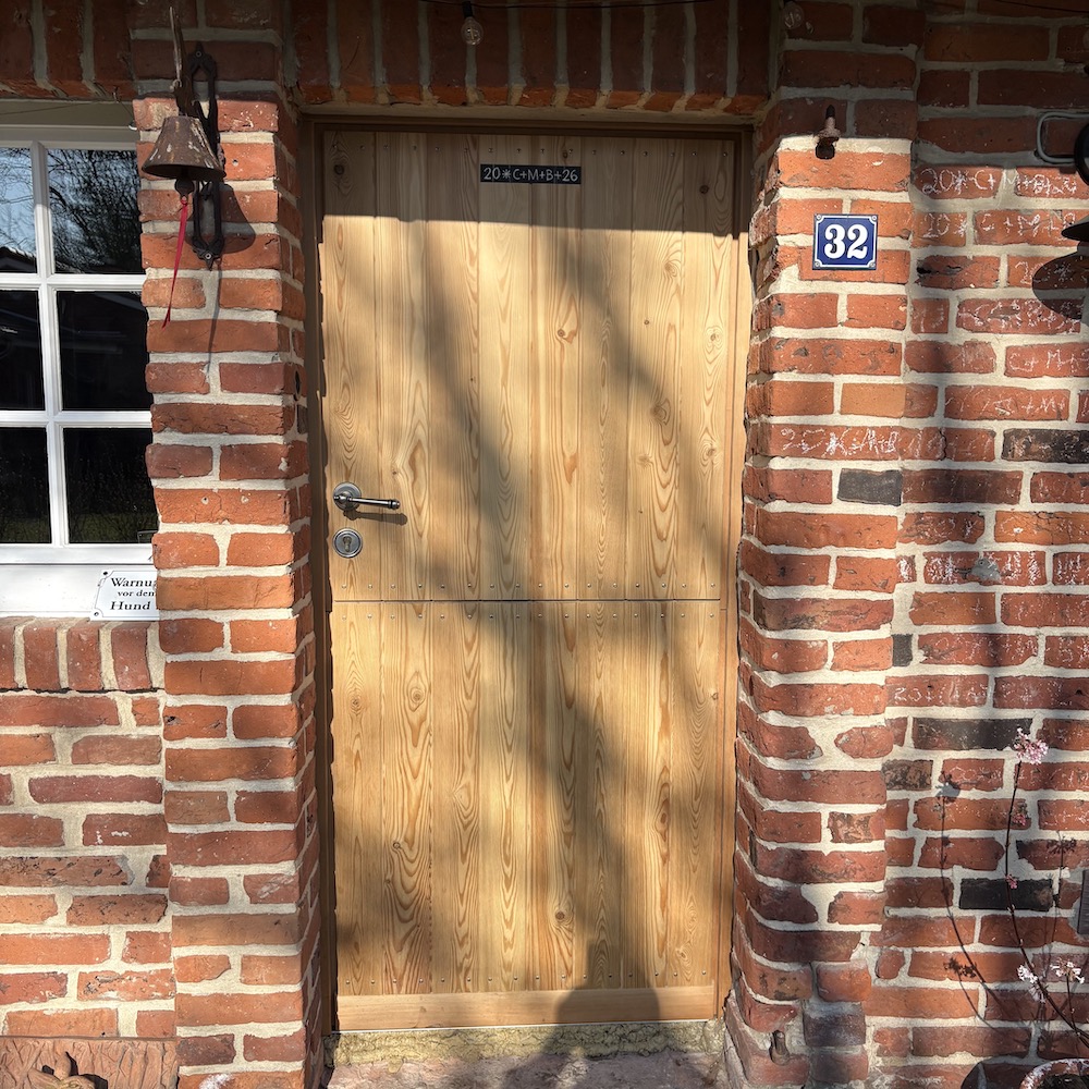 Unsere Haustüren aus Holz verbinden traditionelles Handwerk mit moderner Gestaltung. Ob klassisch, zeitlos oder mit großzügigem Glaseinsatz – wir fertigen jede Tür passgenau nach Ihren Vorstellungen.